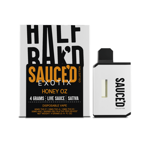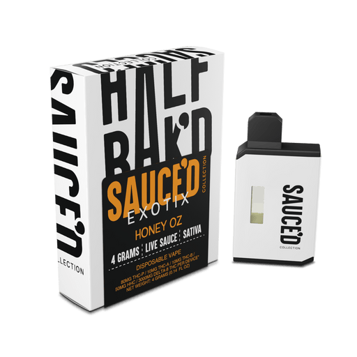 HALF BAK'DExperience Honey Oz, a vibrant Sativa strain in our Sauce'd Exotix Collection. This disposable vape combines a powerful cannabinoid blend with a ri...