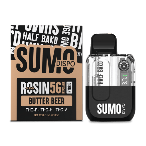 HALF BAK'DExperience the perfect balance of relaxation and euphoria with our Butter Beer disposable. This hybrid blend is infused with a unique rosin blend a...