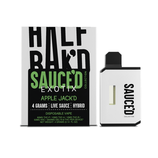 HALF BAK'DDive into the vibrant world of Apple Jack'd, a hybrid strain in our Sauce'd Exotix Collection. This disposable vape is crafted for ease and enjoyme...
